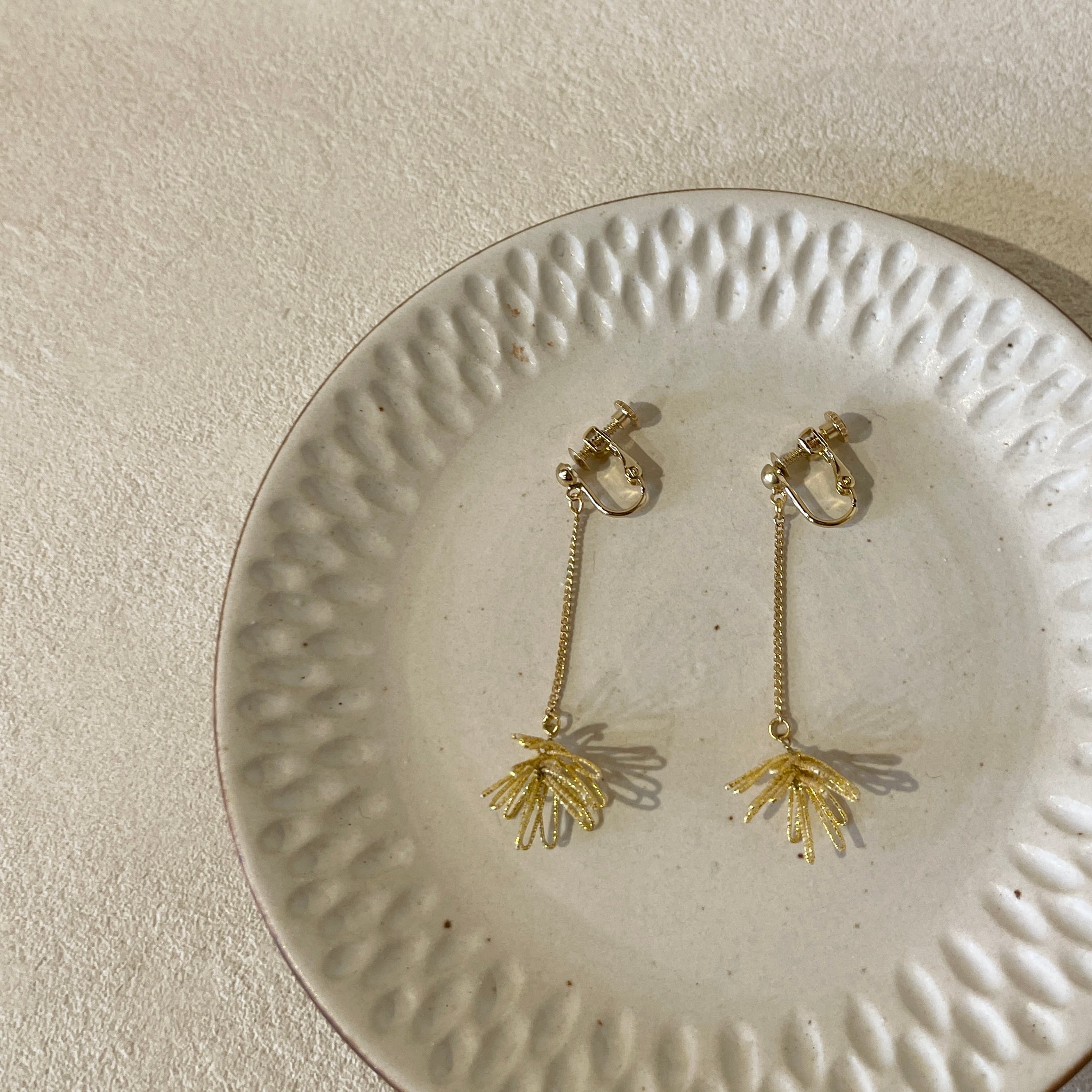 極細水引を使用した、“Pine flower long”は、繊細な花モチーフのイヤリングです。作家の手によって、一つ一つ丁寧に作り上げられています。
